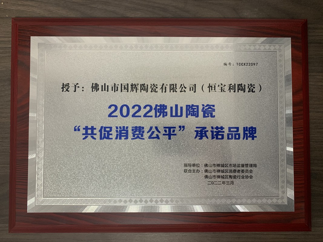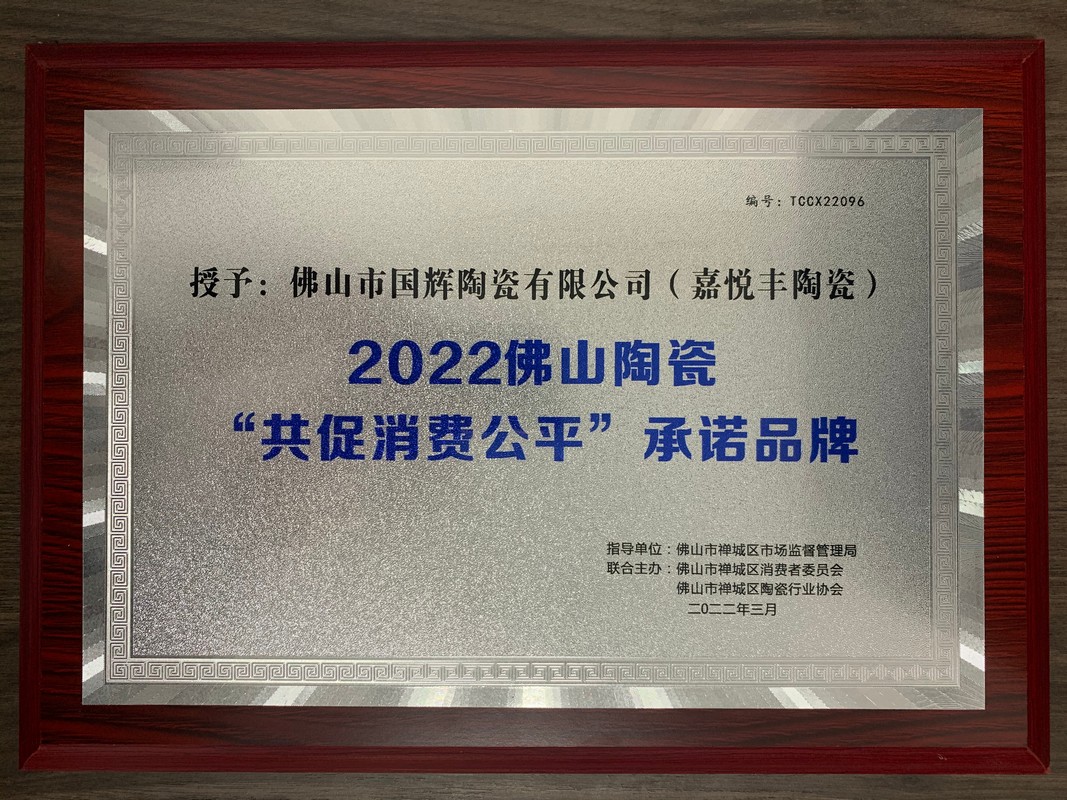 2022佛山陶瓷“共促消費(fèi)公平”承諾品牌.